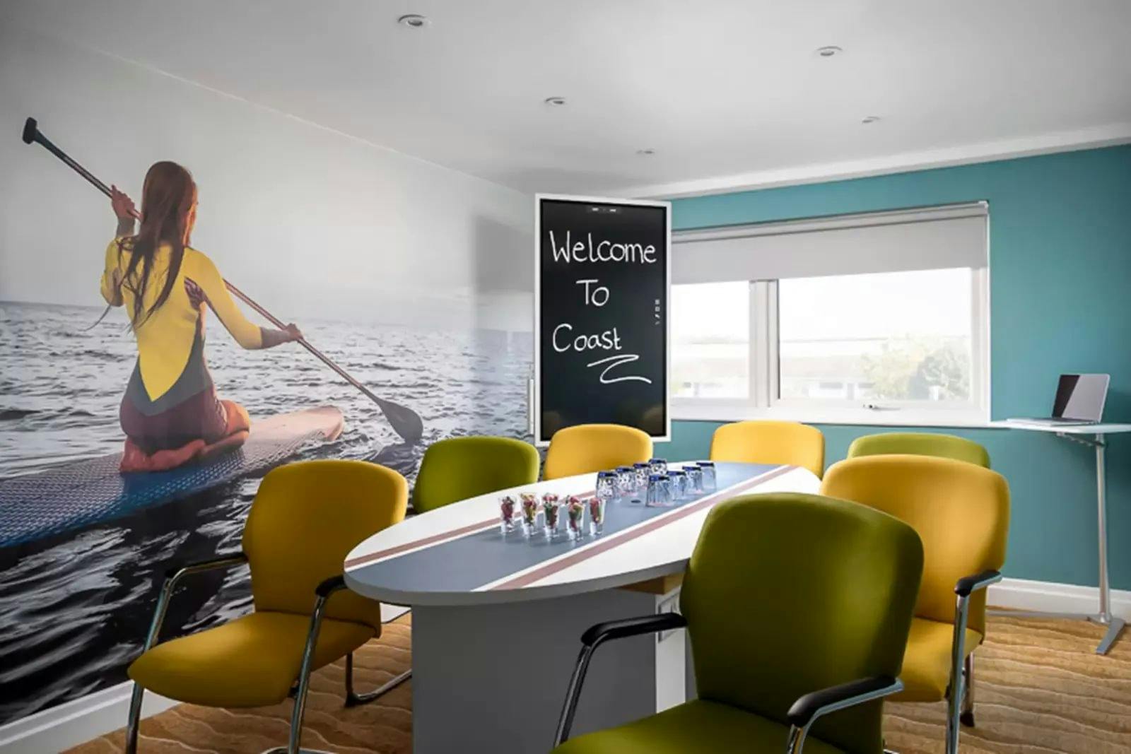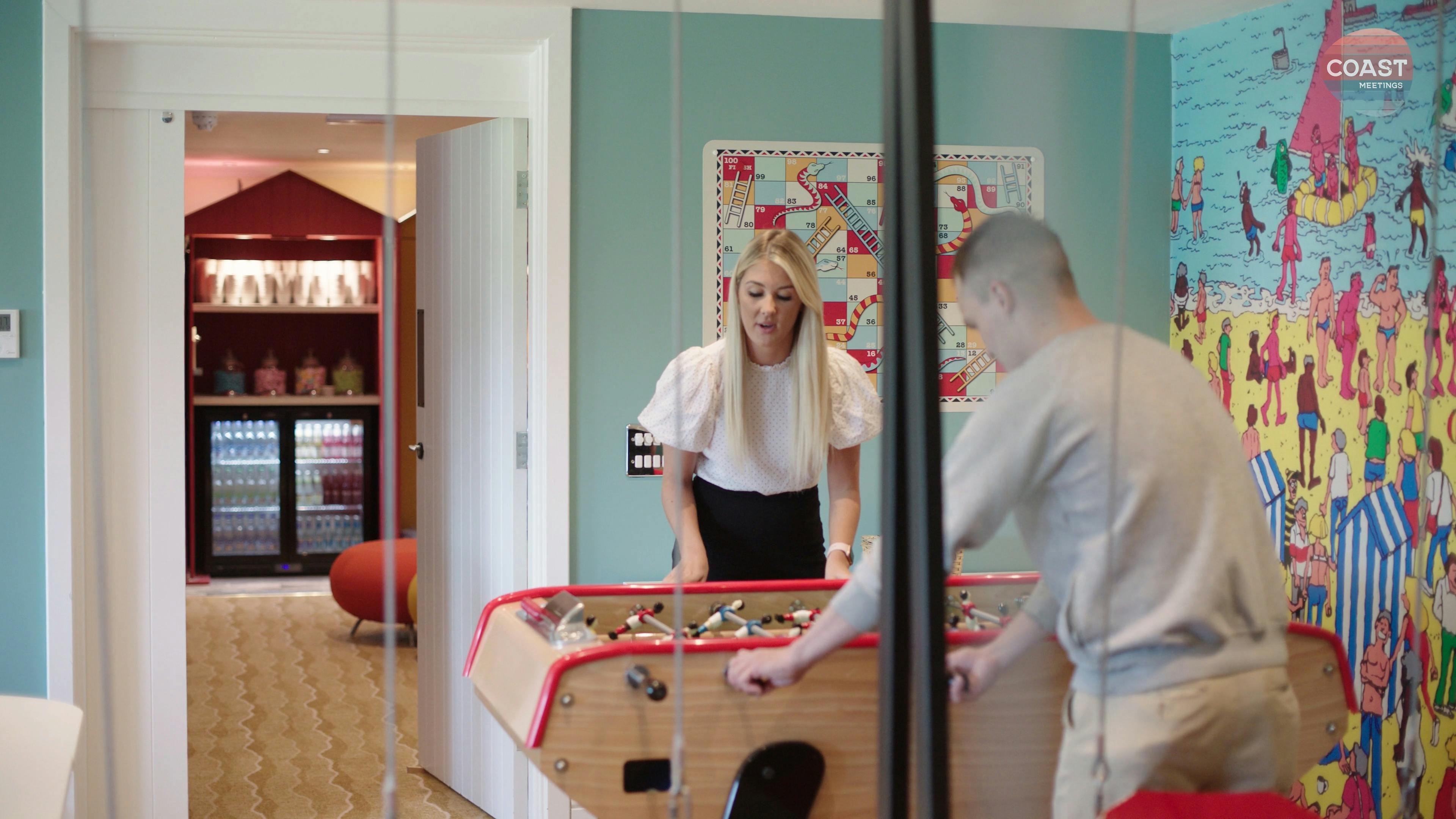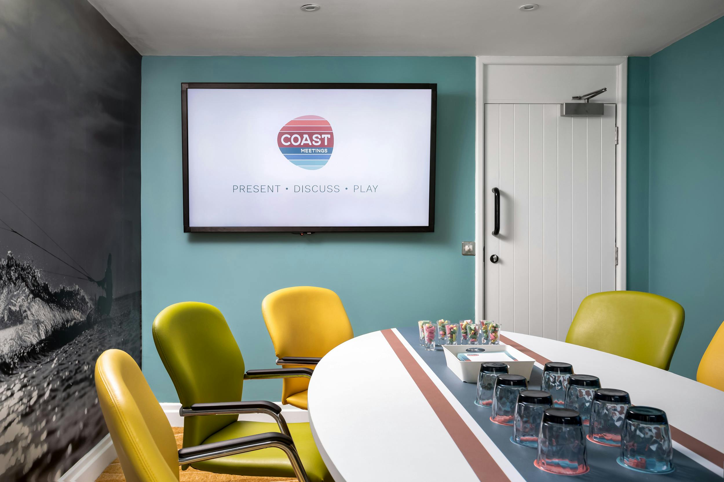Our coastal-themed meeting spaces are designed to spark creativity and collaboration. Think swinging chairs, surfboard tables, and bold colours throughout. Apart from Surf, all these spaces are located off ‘The Deck’ — a vibrant breakout area with pick ‘n’ mix, fresh popcorn, tea and coffee, and a selection of bottled soft drinks.