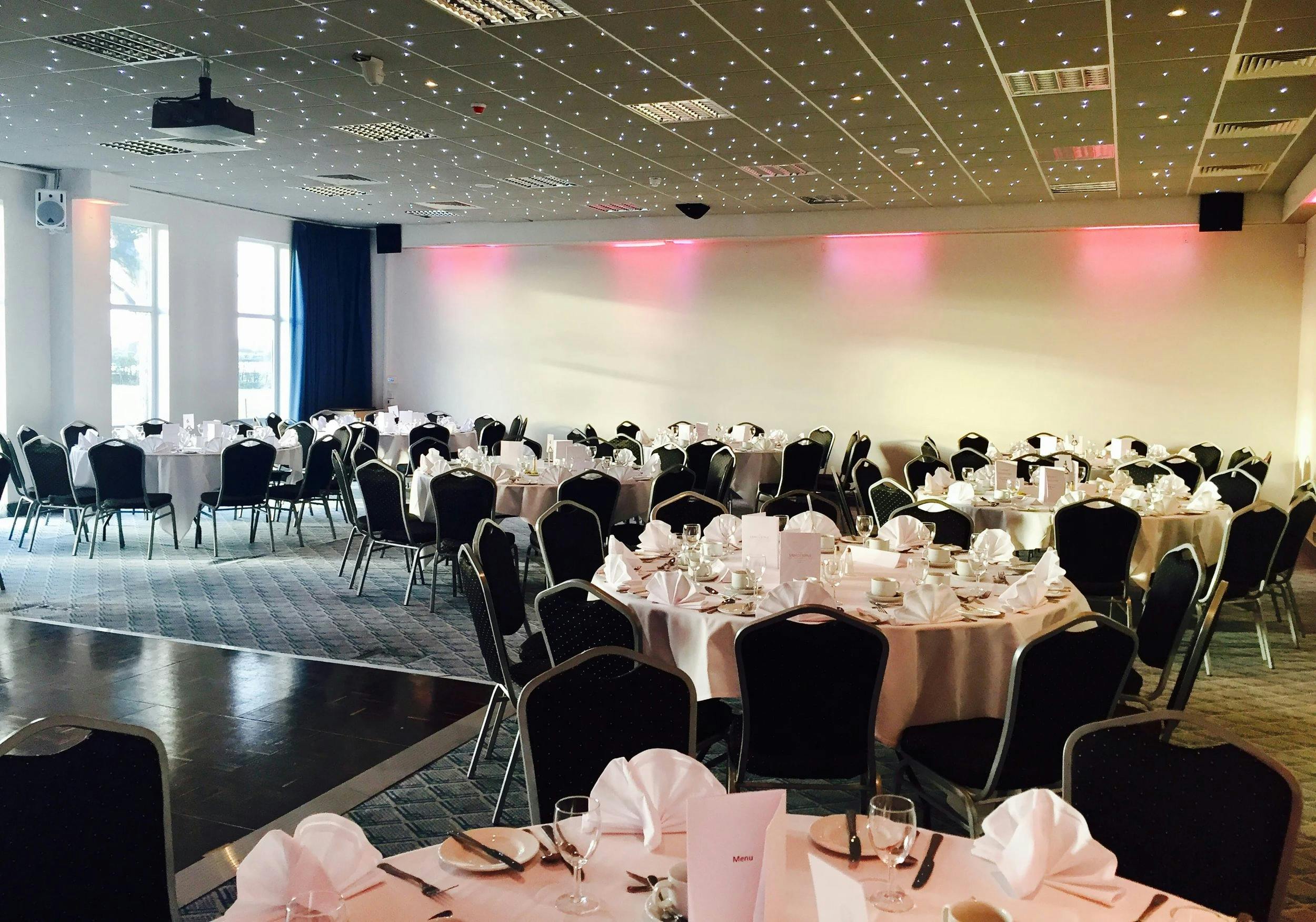 The Winchester Suite combines natural daylight with unique star ceiling lighting to create a standout venue. It can host up to 120 delegates in a banqueting-style layout, 100 theatre-style, or 90 cabaret-style. There's a private bar and nearby restroom, too.