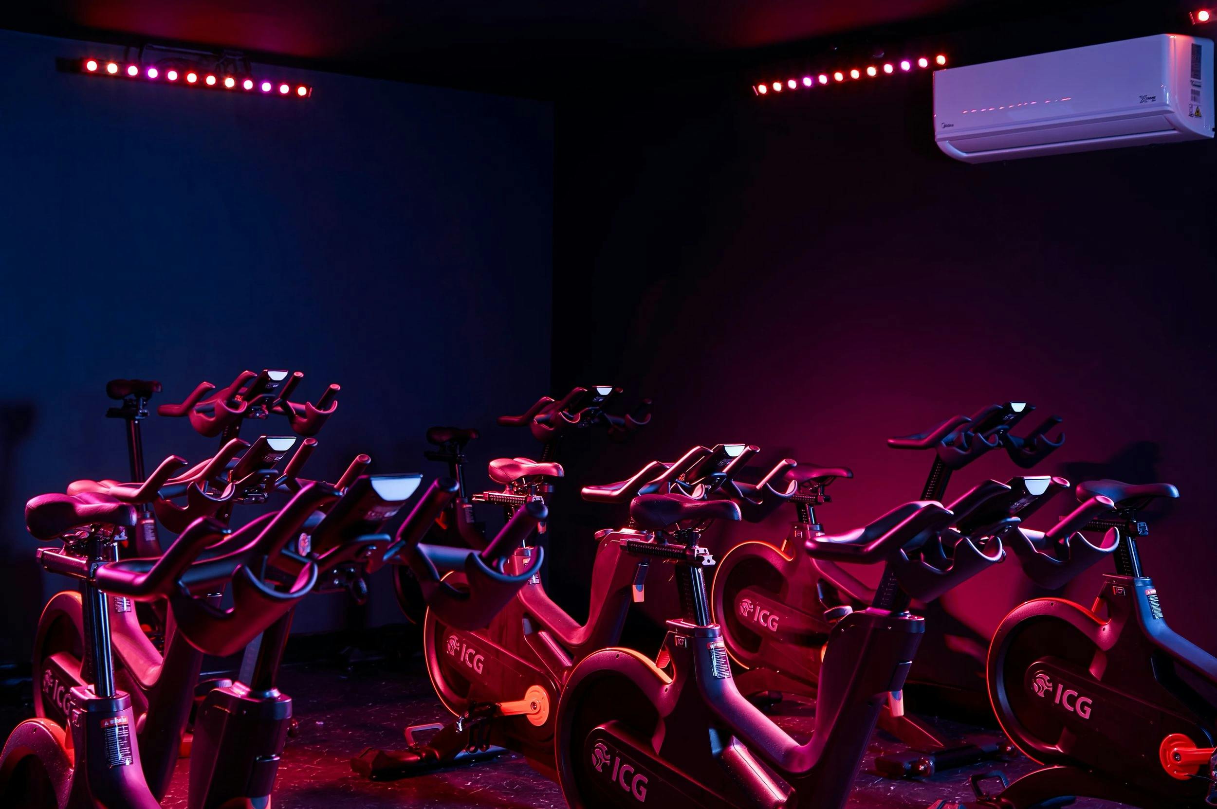 A dynamic fitness space with cutting-edge Technogym equipment, versatile free weights, and an interactive cycling studio.