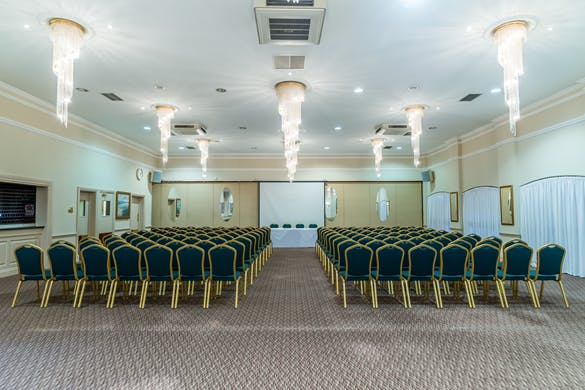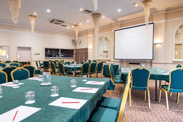A flexible and spacious room ideal for larger meetings or conferences, the Pembroke Suite offers high ceilings and good access. The dividing partition allows for combination with the Wentwood Suite, accommodating up to 500 theatre-style or 300 for a banquet-style set-up. There's also a private bar for breaks and refreshments.